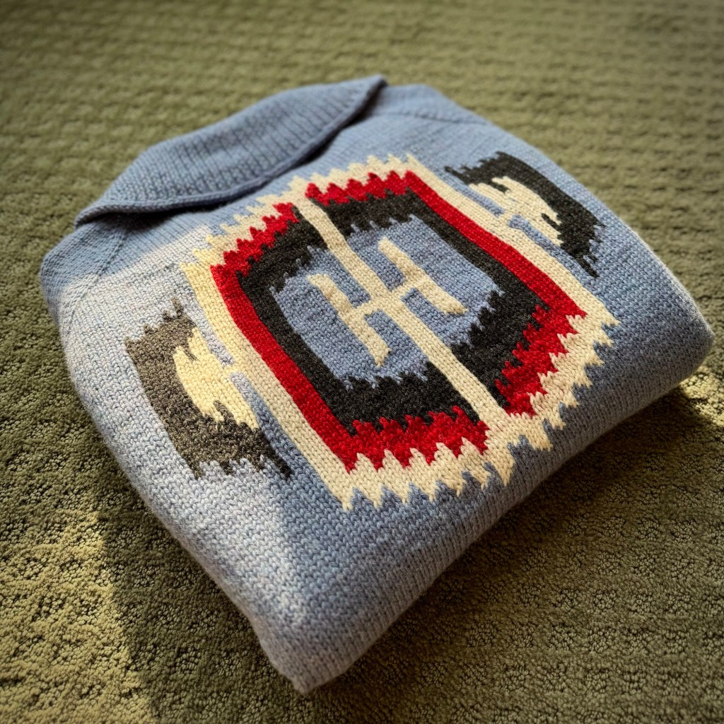 I don’t get to see my uncle very often. He lives in another state and has a hectic work schedule, and I get to visit once a year at best. The last time I saw him was in 2023. While sitting in his kitchen chatting about knitwear, he’d shown me a picture of a Double R Ralph Lauren cardigan. It was denim blue with a shawl collar and western-style colorwork throughout. He said he loved the way it looked and had even tried it on in a store, but with a price tag nearing $1,000, he’d been keeping an eye on eBay to see if he could find it cheaper.